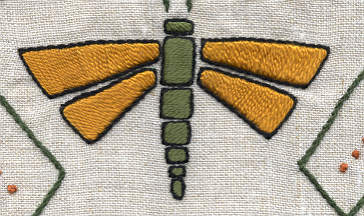 Dragonflies adorn vases, copperwork and textiles from the Arts & Crafts era. My original conventionalized dragonfly design is inspired by the "play impulse" described in Ernest Batchelder's Design in Theory and Practice, 1910.
